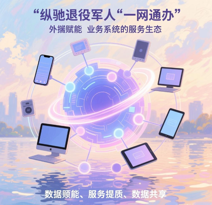纵驰退役军人“一网通办”业务系统以"数据赋能、服务提质、数据共享"为核心,通过业务流程再造与技术深度融合,创新打造"一网通联、多端协同"的服务生态。