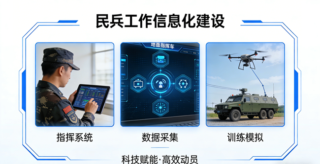 民兵工作功能 功能概述:贯彻党的二十大精神和习近平强军思想,适应形势变化,统筹国防建设与经济社会发展,做好民兵和征兵工作,推动国防动员和后备力量建设发展5。 功能设计:通过 “上级新闻” 展示国防动员、征兵工作的新闻资讯,让相关人员了解全国或上级层面的工作动态;“本地区工作” 则聚焦本地国防动员和征兵工作情况,便于掌握本地工作进展与成果,利于本地工作的开展与经验总结。 国防动员功能5 功能概述:展示国防动员相关政策文件和公示公告信息,为相关工作提供政策依据,保障民众知情权,确保国防动员工作公开透明。 功能